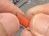 このフックの芯の部分に、熱収縮チューブを通してから、スプリットリングに設置します。