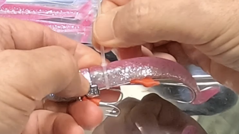 まず、フックを変えるのですが、画像のように、フックをテール側止まるように、半固定します。
