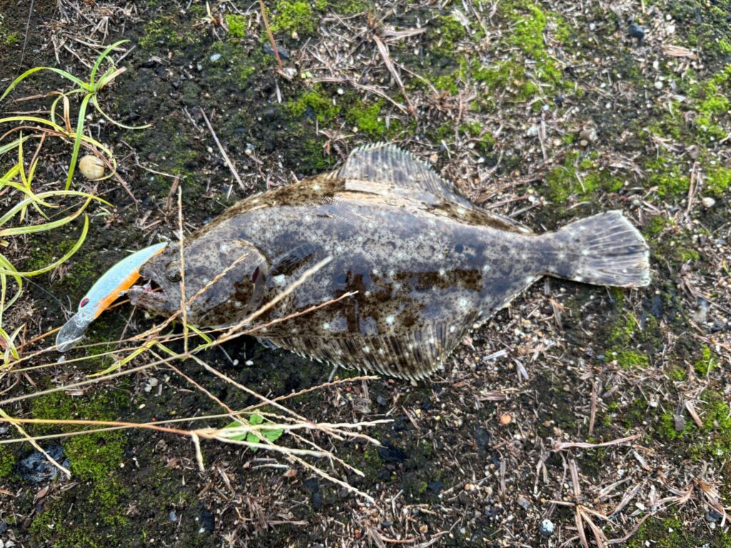 まさかのヒラメ。残念ながらソゲサイズだったのでリリースしましたが、ヒラメが釣れるなんて楽しすぎる・・・。
