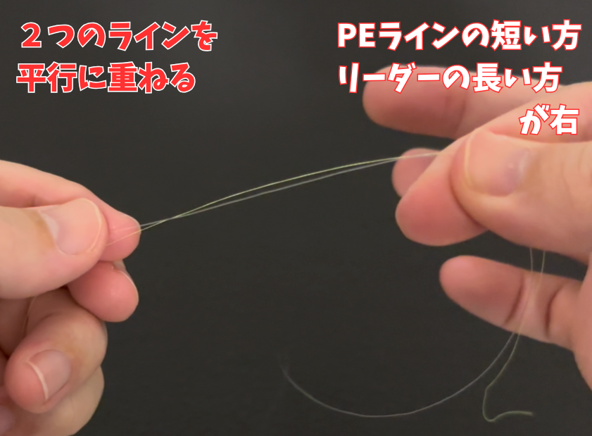 - PEラインの短い方と、リーダーの長い方を円に入れる