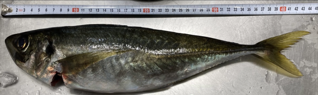これは2023年1月上旬の釣果ですが、44センチのギガアジが釣れたことがあります。