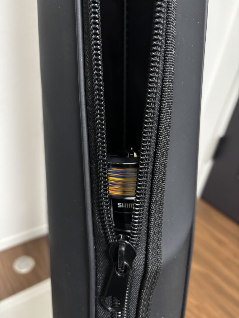 この中にさらに竿が入るわけですから、飛行機に乗る場合などの移動中は結構な重さになります。